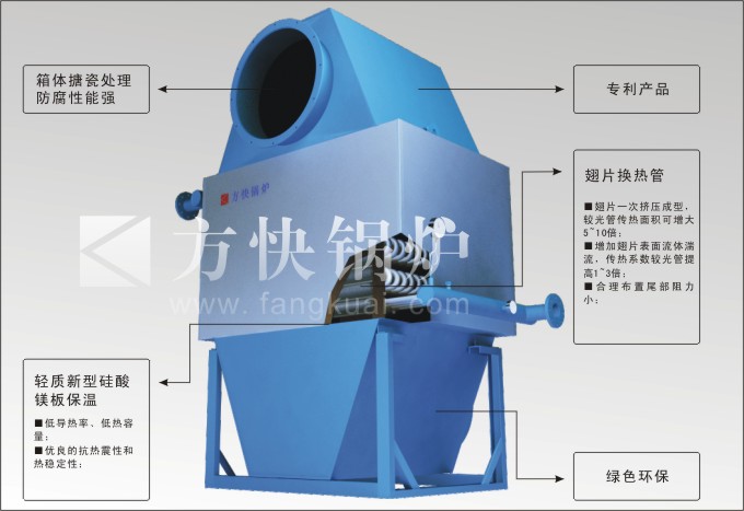 螺旋鰭片管作為熱面,換熱效率高,受熱面充足,煙氣側系統(tǒng)阻力小,滿足普通燃燒器的要求。