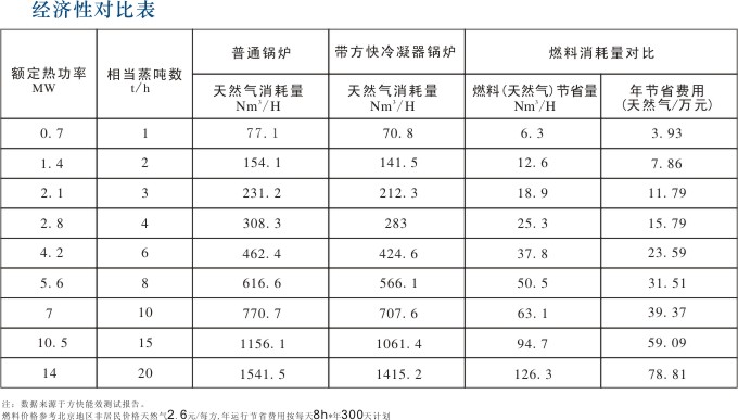 2. 節(jié)能 系列采用新型的翅片管、換熱管,使換熱更加充分,排煙溫度可降到40℃~80℃;鍋爐效率可以提高6~15%,以及凝結水排水結構能夠充分回收煙氣中的潛熱,節(jié)能效果顯著。由于有特殊的結構方式,總壓降較小,動力消耗少,即煙氣壓降小且符合系統(tǒng)要求;